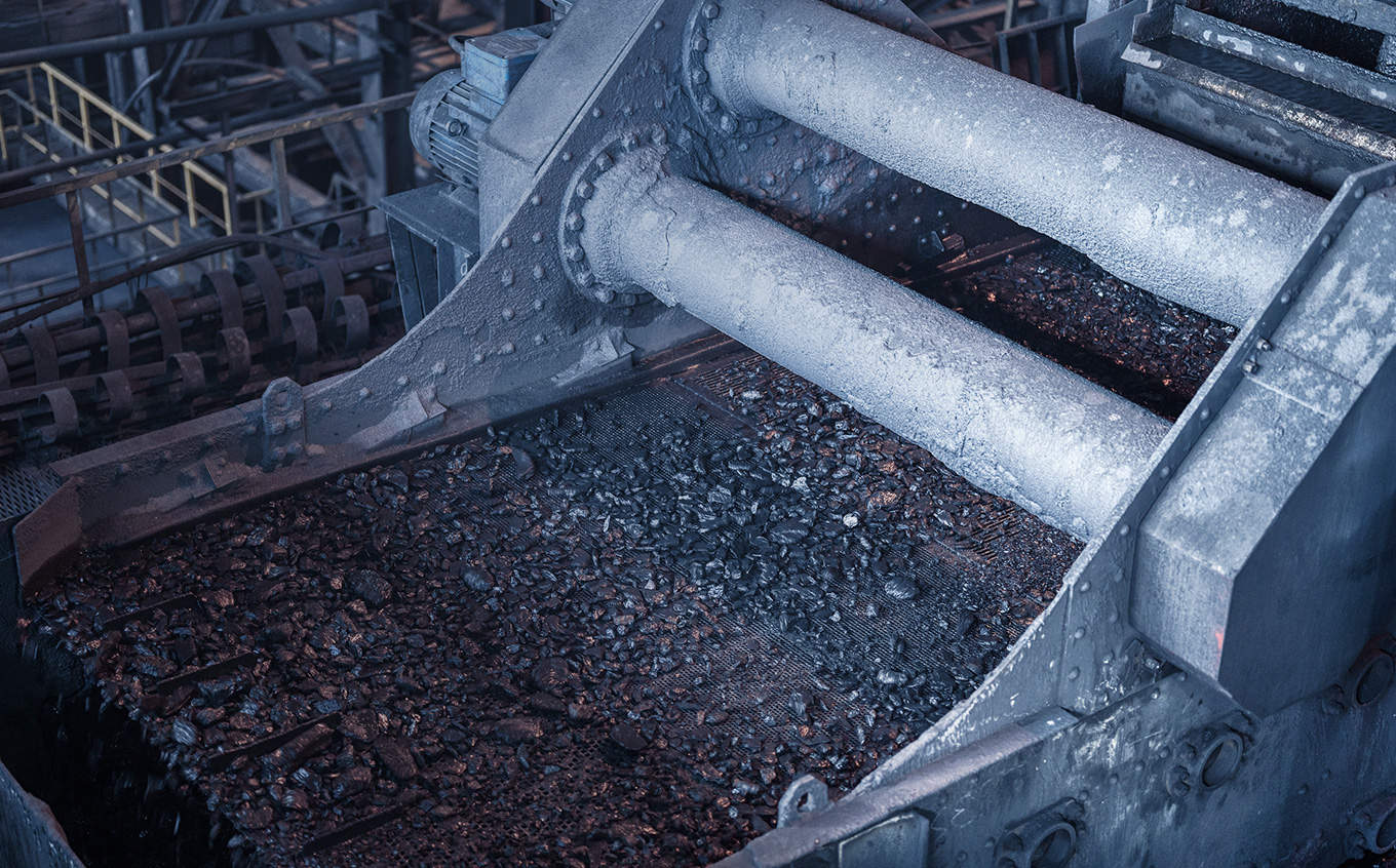 輥壓機是利用兩個速度相同、相對轉動的磨輥(一個為固定輥,一個為活動輥),原料由上部喂料口進入,在兩輥縫隙中被高壓力擠壓而粉碎。